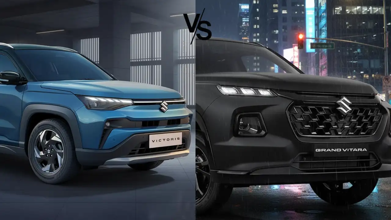 Grand Vitara vs Victoris — Maruti Suzuki now offers two midsize SUVs that overlap heavily in powertrains and features: the established Grand Vitara (sold via NEXA) and the brand-new Victoris (sold via ARENA). If you’re torn between the two, this guide breaks down their variant-wise prices, key features, colour options, specifications, and a practical ‘Who Should Buy Which’ section.