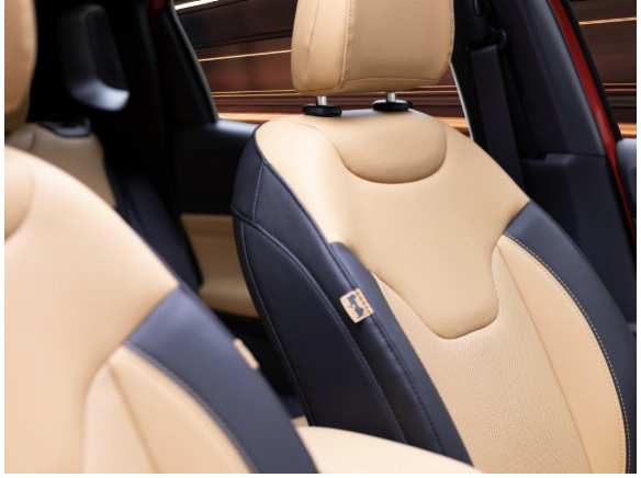 • Tupelo vinyl accents with embossed Jeep branding – Subtle branding elements that enhance the upscale feel