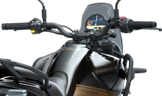 The Royal Enfield Himalayan 450 embraces technology without compromising its adventure focused identity. The centrepiece is the new 4 inch circular TFT display called the Tripper Dash, which offers smartphone connectivity and full map navigation powered by Google Maps.
